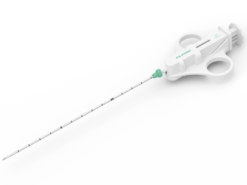 - Igły z technologią "cutting needle" – z ostrzami ułatwiającymi pobieranie fragmentów tkanki w całości.